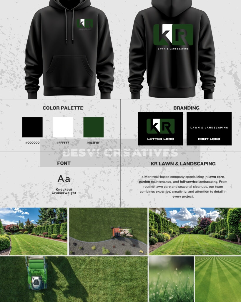 Besvi Creatives had the pleasure of designing the logo and full branding for KR Lawn & Landscaping, bringing their vision of professionalism and reliability to life.